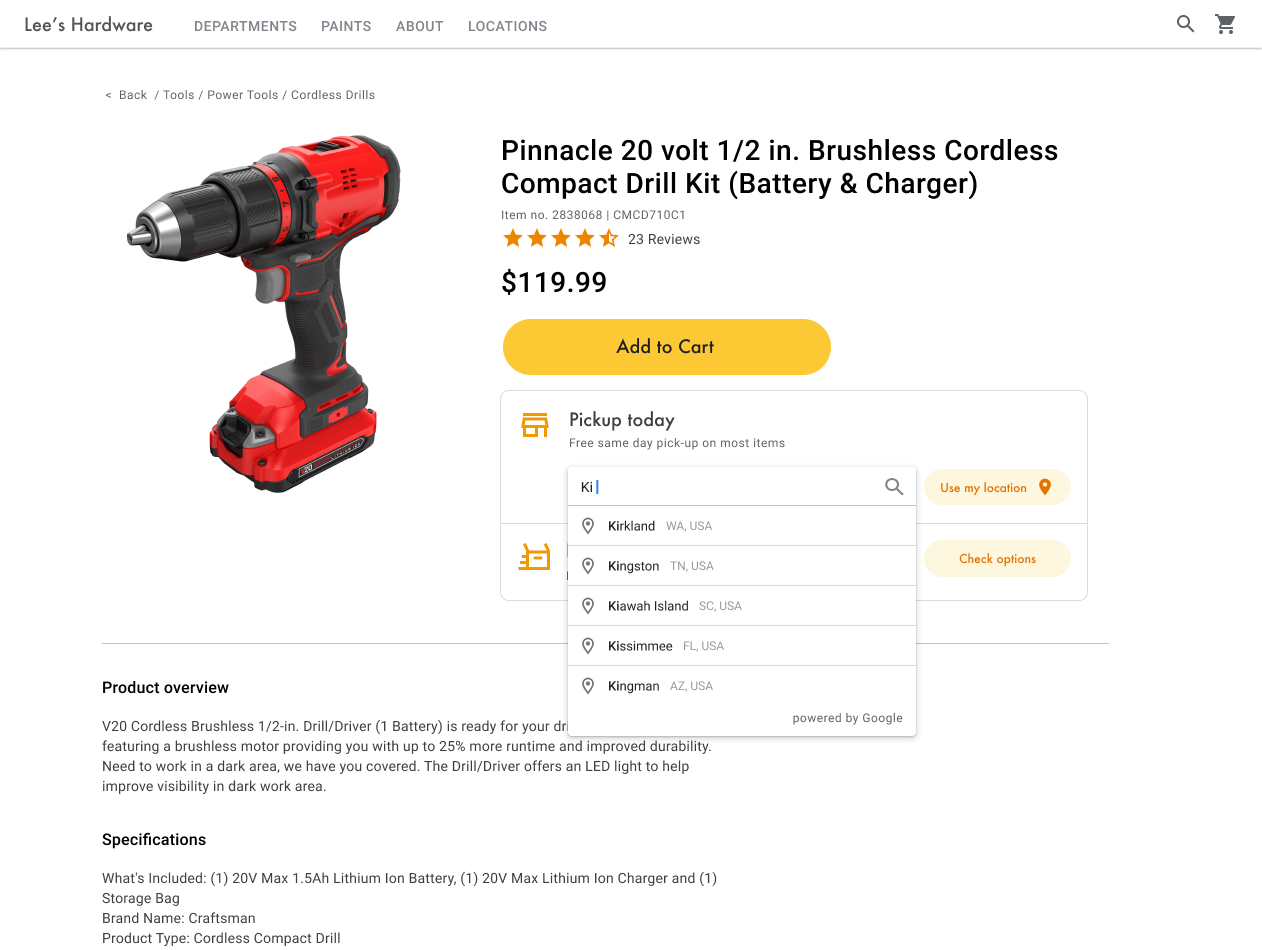 من المكوّنات الأساسية في أداة "محدّد مواقع المنتجات" تحديد الموقع الجغرافي الأولي للمستخدم. يمكنك تقديم خيارَين للمستخدم لتحديد موقع البداية: كتابة مصدر البحث أو منح أذونات لتحديد الموقع الجغرافي في متصفّح الويب أو خدمات الموقع الجغرافي على الأجهزة الجوّالة.