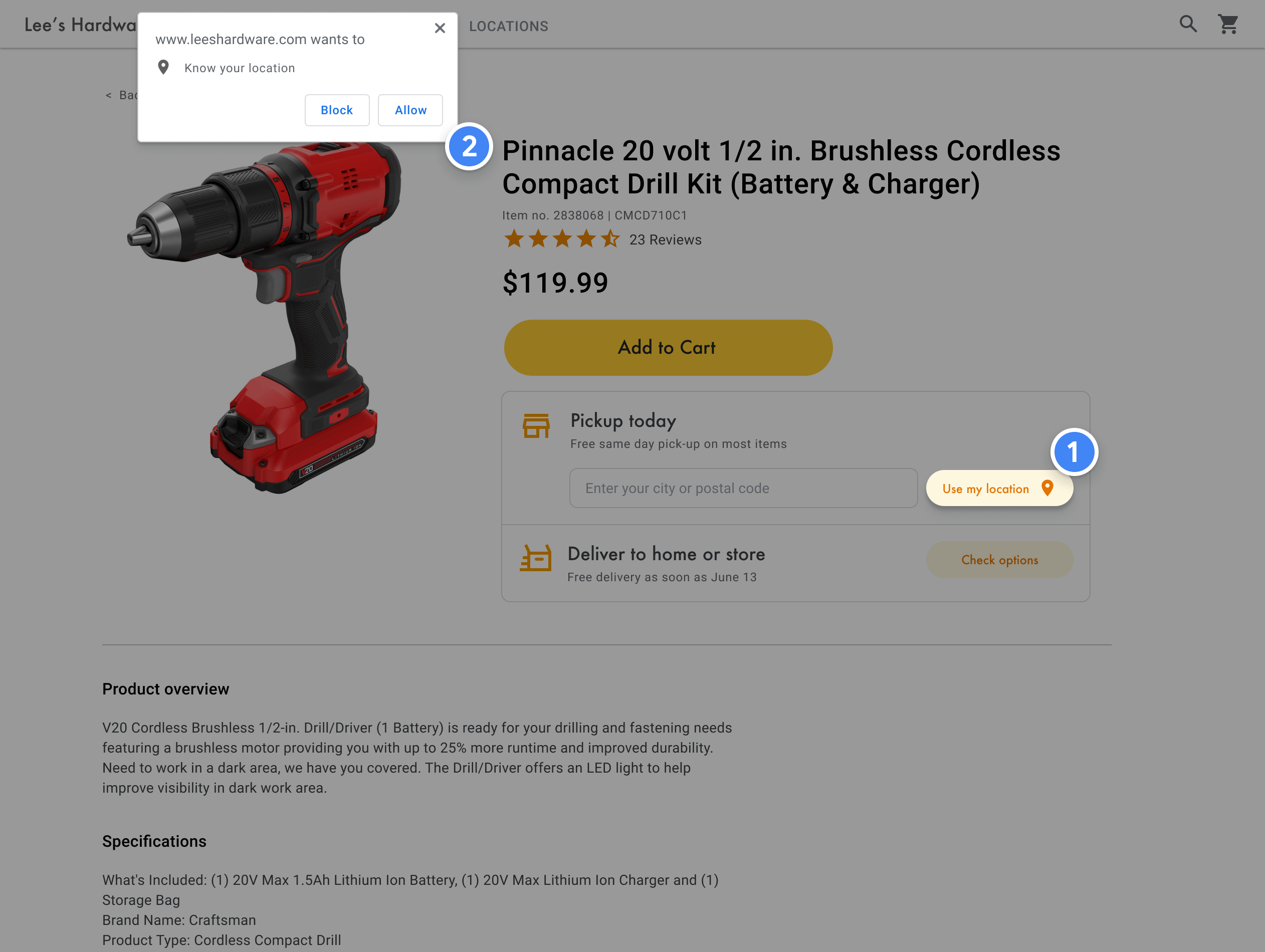 Für jeden Standort in der Nähe lässt sich die Verfügbarkeit des Produkts anhand Ihrer Inventardatenbank anzeigen.