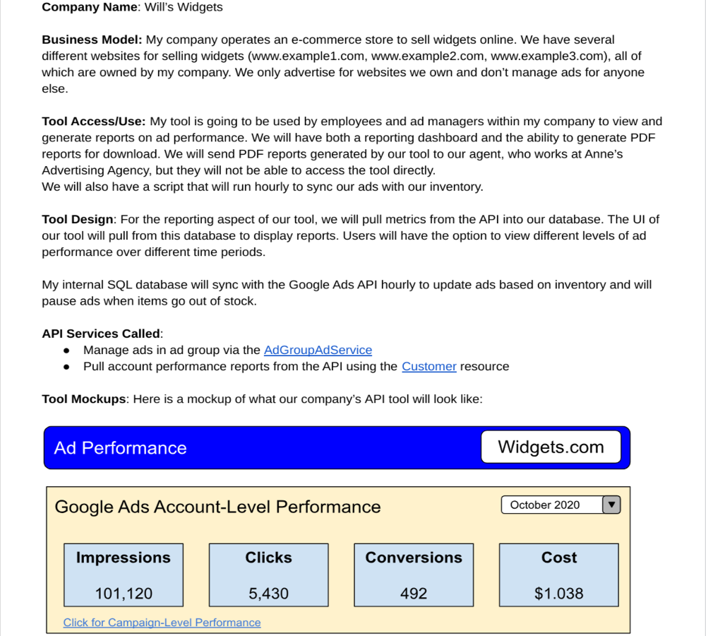 このフォームでは、API を使用するソフトウェアの設計に関する詳細な質問と、そのソフトウェアの設計文書についての質問と、なお、このアプリの「MCC」とは Google 広告 MCC アカウントを指します