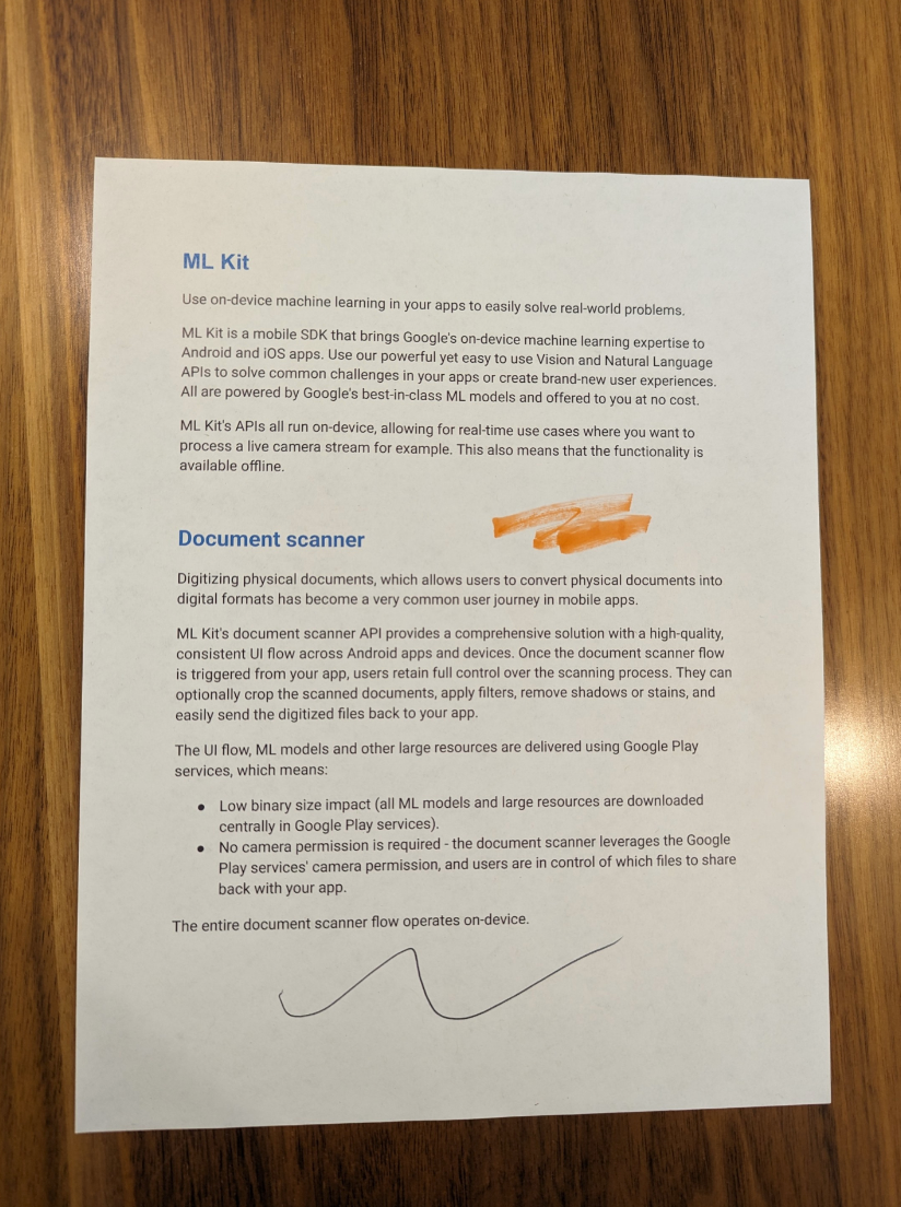 La numérisation de documents physiques, qui permet aux utilisateurs de convertir des documents physiques en formats numériques, est devenue un parcours utilisateur très courant dans les applications mobiles. L'API Document Scanner de ML Kit fournit une solution complète avec un flux d'interface utilisateur cohérent et de haute qualité sur l'ensemble des applications et appareils Android. Une fois le flux du scanner de documents déclenché depuis votre application, les utilisateurs conservent le contrôle total sur le processus de numérisation. Ils peuvent éventuellement recadrer les documents numérisés, appliquer des filtres, supprimer les ombres ou les taches, et renvoyer facilement les fichiers numérisés à votre application.