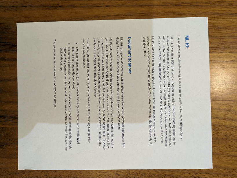 - Faible impact sur la taille du binaire (tous les modèles de ML et les ressources volumineuses sont téléchargés de manière centralisée dans les services Google Play).