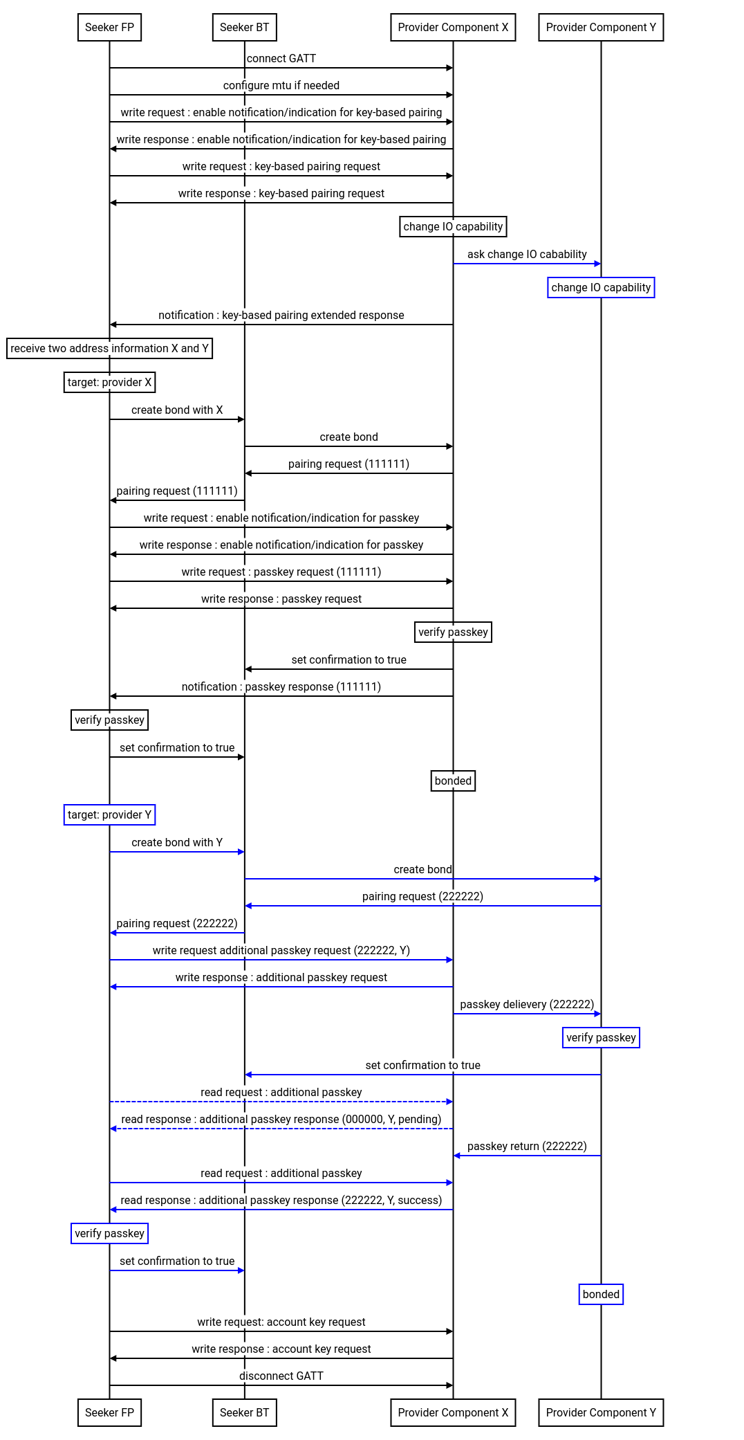 Istniejące połączenie GATT jest utrzymywane, aby zapewnić ochronę MITM w dodatkowych komponentach. Główny powiązany komponent będzie obsługiwać dostarczanie wiadomości między narzędziem Szybkie parowanie i jego pozostałymi komponentami.