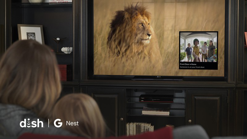 Quando a Nest Hello Doorbell é pressionada, o DISH Hopper mostra uma notificação na tela com uma imagem de quem está na porta. Agora você pode escolher se vale a pena interromper sua experiência de entretenimento para atender à porta.