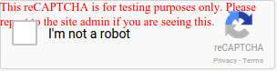 reCAPTCHA 위젯은 프로덕션 트래픽에 사용되지 않도록 경고 메시지를 표시합니다.