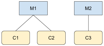 Immagina di essere l'utente A, un amministratore di M1 e C3 nelle due gerarchie raffigurate sopra. Se effettui una chiamata all'API Search Ads 360 Reporting, ad esempio a