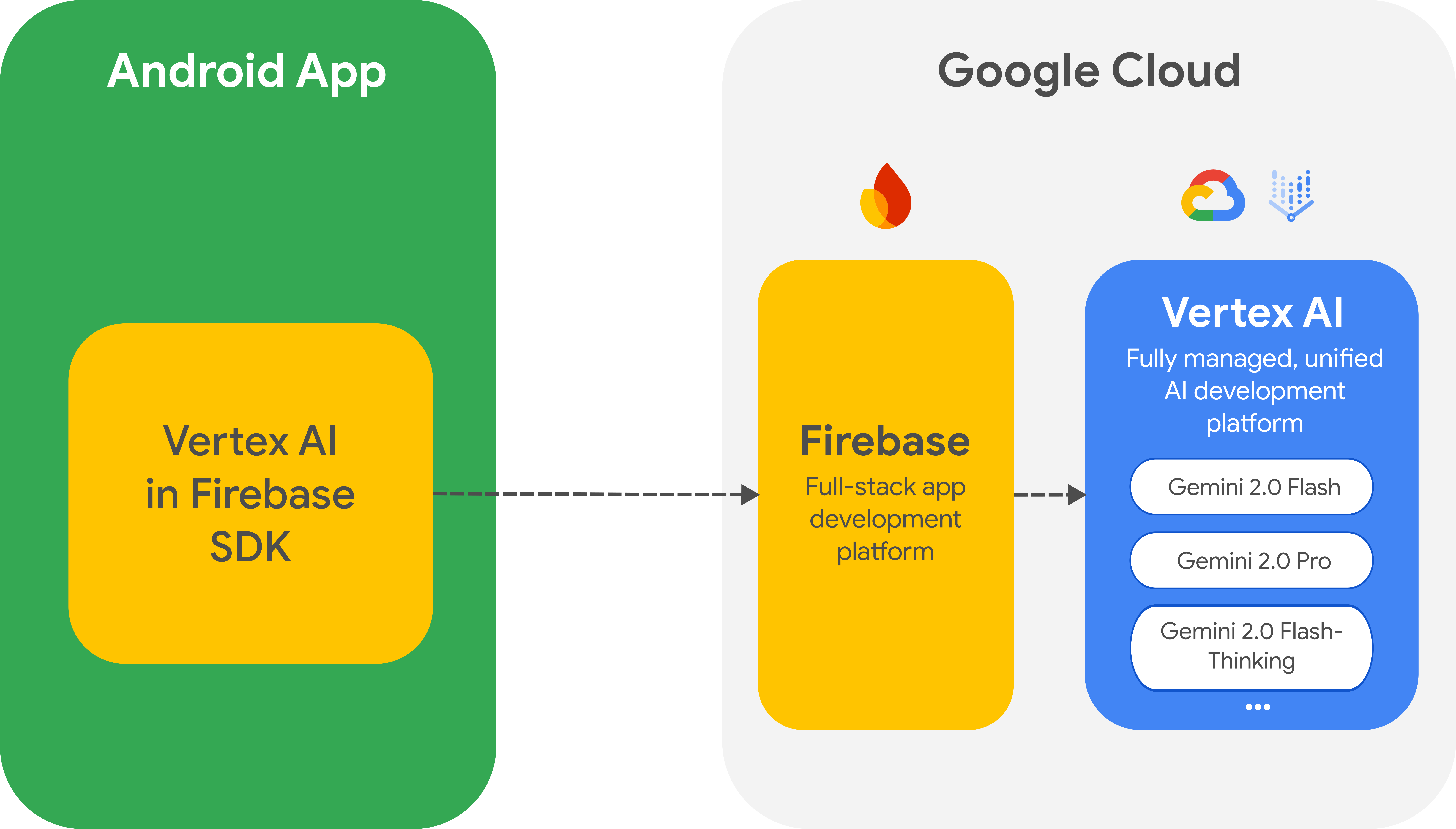 Como desenvolvedor Android, você pode usar a Vertex AI no Firebase para implementar rapidamente os recursos de IA generativa no seu app Android usando os modelos Gemini Pro e Flash para tarefas de geração de texto e o Imagen para tarefas de geração de imagem.
