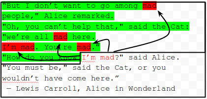 Aşağıdaki diyagramda, LZ77 (2D varyantı) kelime eşleştirmeyle (piksel yerine) gösterilmektedir.
