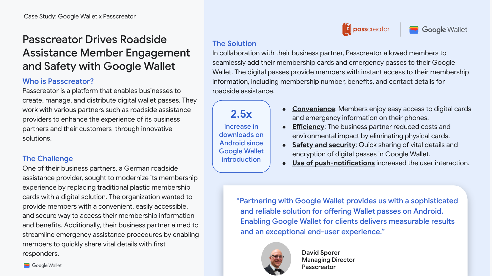 Немецкий поставщик услуг помощи на дороге заменил пластиковые карты для модернизации сервиса. После внедрения Google Wallet количество загрузок проездных на устройства Android выросло в 2,5 раза.